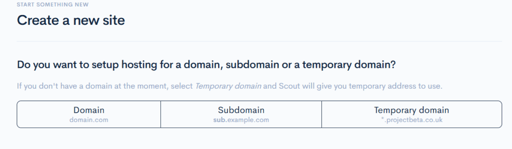 | Subdomain | Site will be on a subdomain | shop.exampledomain.com |
