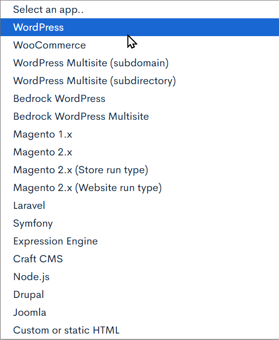 - Choose your application (e.g., WordPress, Laravel, etc.)