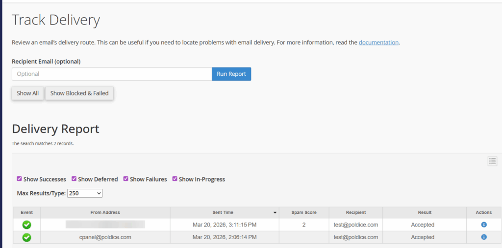 Where delivery logs show the recipient server accepted the message and authentication checks are correct, there is no server-side fault to fix on the hosting account. Any inconsistent delivery is most likely caused by the recipient provider’s own spam filtering decisions.