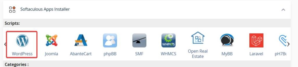 - Alternatively, you can use the WordPress App Script from the Softaculous App Installer Section.