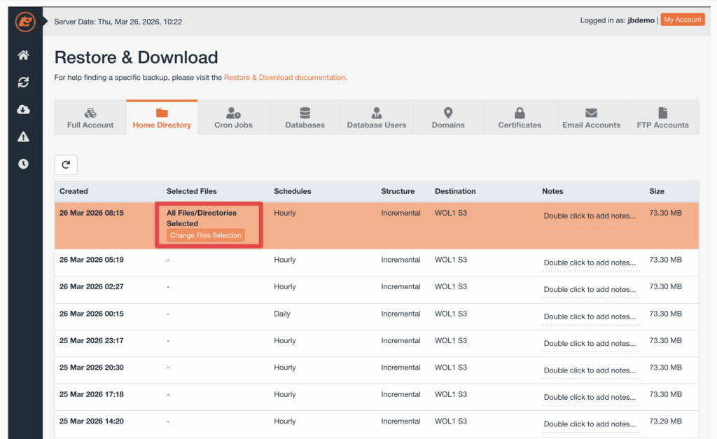 JetBackup – Restoring or Downloading Files from a Home Directory