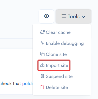 - From the Site Overview page, click “Tools” (top right)