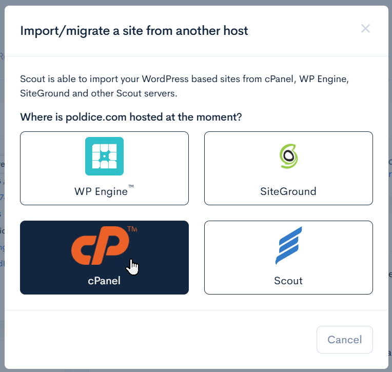 - Choose “cPanel” as the import source
