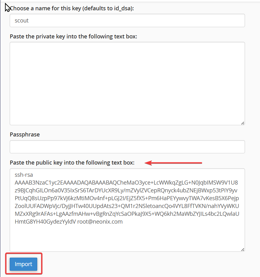 Step 3: Add SSH Key to cPanel