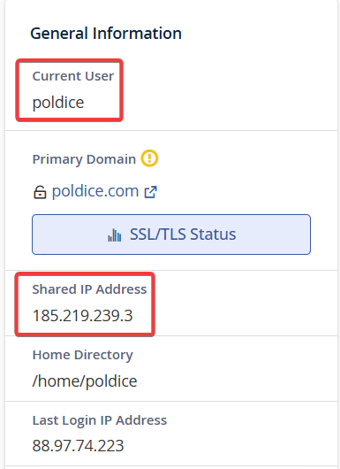 | IP Address | Your cPanel server IP | From cPanel sidebar |