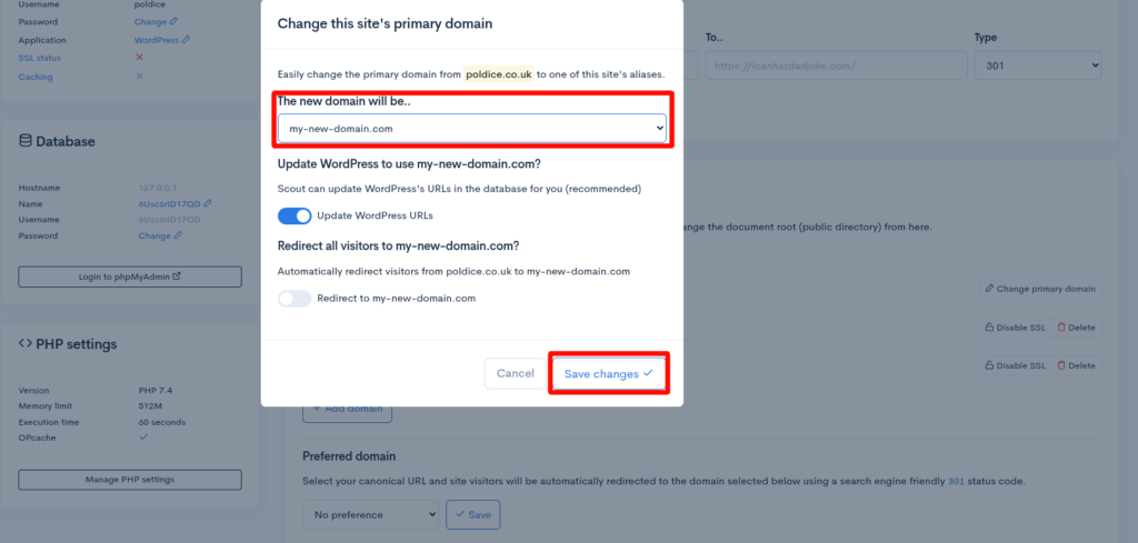 ULTRA Cloud will now automatically change the domain on the site for you, including changing the domain in the database.