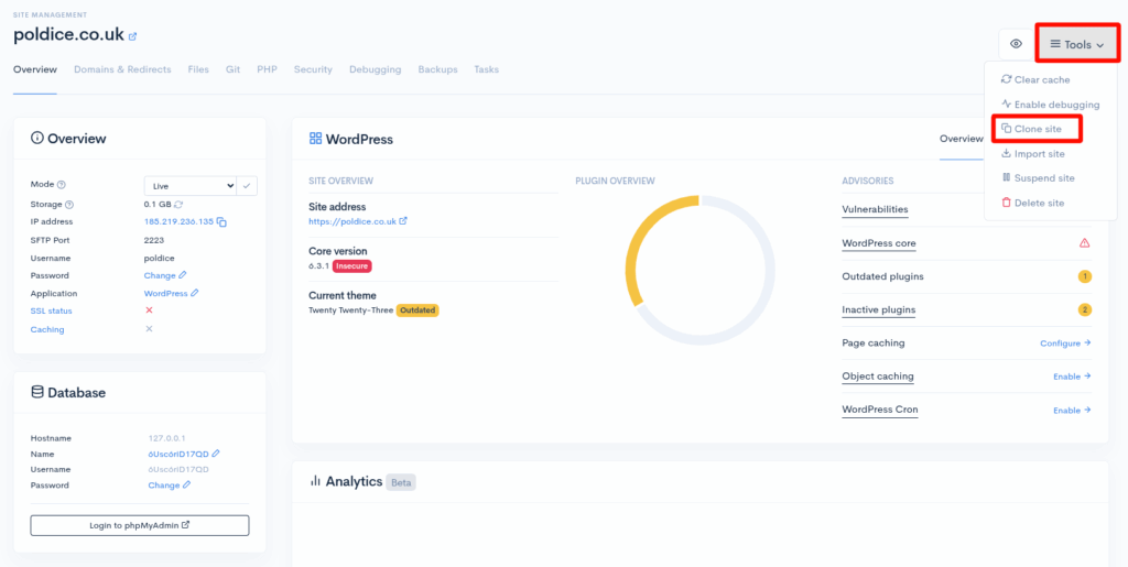 ULTRA Cloud will now create a clone of the site for you as well as change domain in the database.