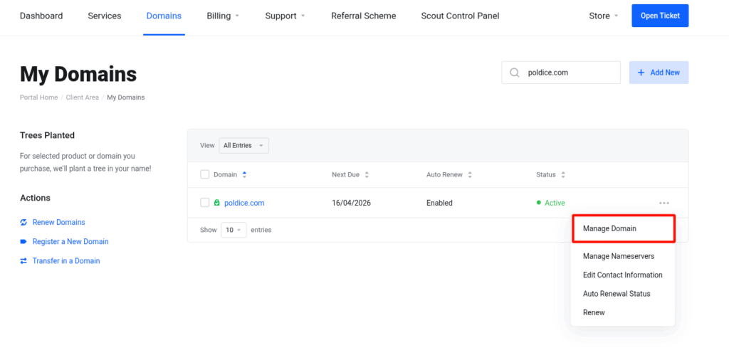1. Login to your Customer Portal, then navigate to Domains/My Domains.